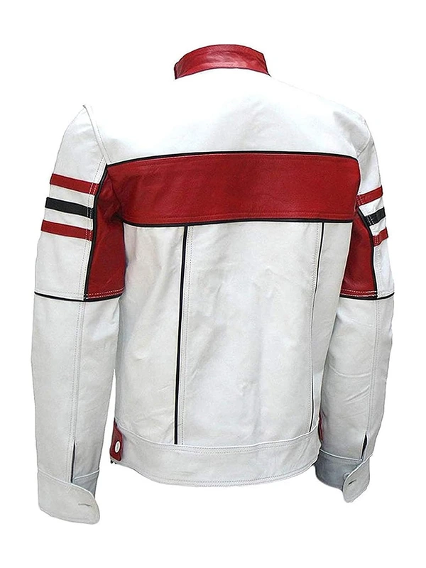 Men Red & White Cafe Racer Jacket – Ride in Bold, Timeless Style